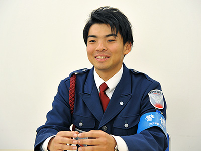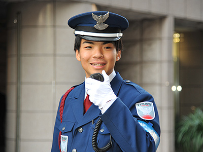 現在は、神奈川事業部業務課に在籍しながら、施設の常駐警備員として、開店閉店業務や施設内の巡回、防災センターでのモニター監視・受付対応等を行っています。